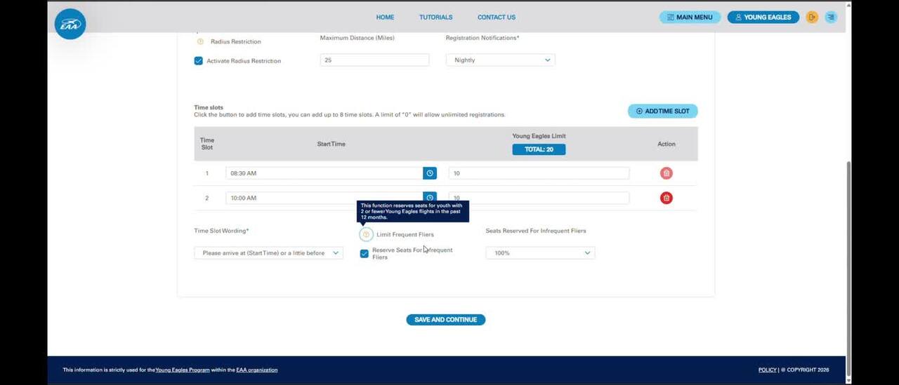 Learn how leverage optional features which provide Young Eagles registrations preferences to youth based on their zip code radius or recent Young Eagles flight history.